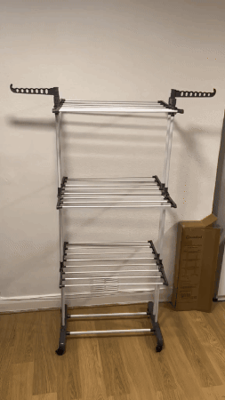 Maximizá el espacio para secar tu ropa con este tendedero de pie Coliseu Secalux de 3 niveles. Su diseño resistente y estable permite colgar prendas de distintos tamaños sin ocupar demasiado lugar, mientras que su estructura negra combina funcionalidad y estilo. Ideal para uso en interiores o balcones, es una solución práctica y duradera para mantener tu ropa organizada y bien aireada.